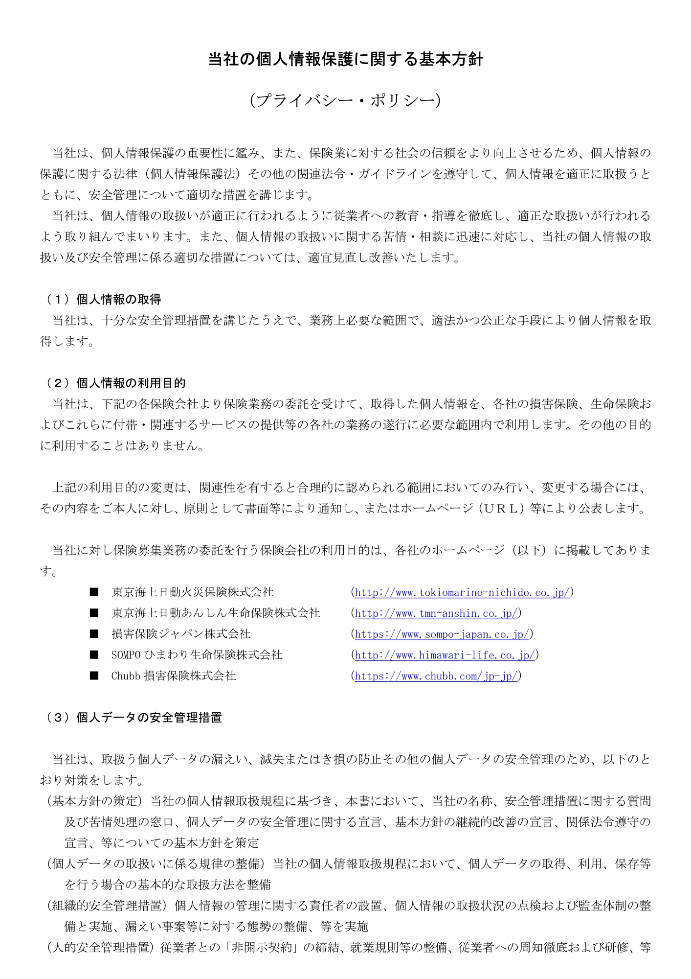 個人情報保護に関する基本方針(プライバシーポリシー)